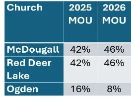 3. That we recommend the continuation of the Shared Ministry team collaboration in 2026 and that the cost sharing for the funding of the salaries and benefits for the Shared Ministry team in the 2026 MOU be changed as indicated in the chart below: