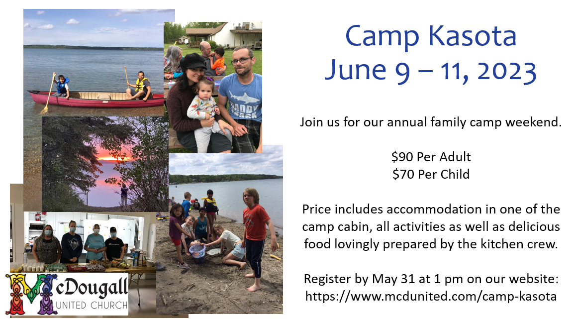 We hope that you and your family will be able to join us for our Camp Kasota weekend.