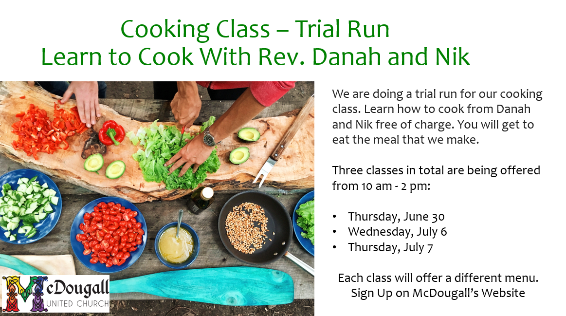 This is an excellent opportunity for you to learn or improve your cooking skills with Rev. Danah and Nik at no cost. While the paid classes will be offered to youth only, these trial runs are open to adults.