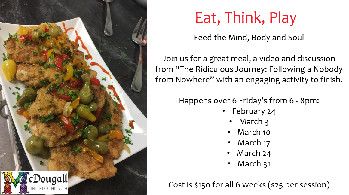 You will be following “The Ridiculous Journey: Following a Nobody from Nowhere”, a 7 series film series by The Work of The People with discussions lead by Rev. Joanne. Please be advised that the first video will be shown at the Ash Wednesday Service on February 22 at 7 pm. Here is more information about the series: “A search for purpose and meaning in the events and choices of our lives. A costly journey with an unknown destination. A Middle Eastern homeless man from twenty centuries ago and why he still stirs the souls and imagination of so many.”