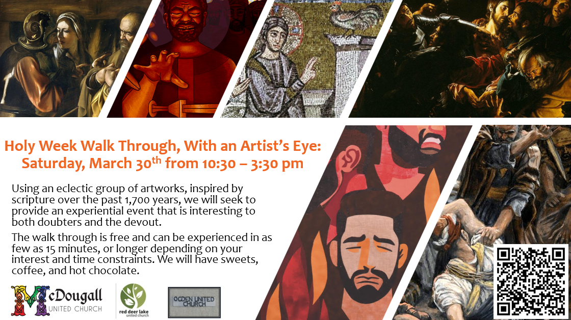 Using an eclectic group of artworks, inspired by scripture over the past 1,700 years, we will seek to provide an experiential event that is interesting to both doubters and the devout.