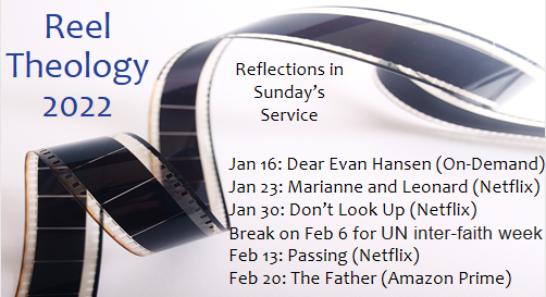 Reel Theology starts on January 16th and runs until February 20. Watch the movies at your convenience and then join us for reflections on Sunday during the service.